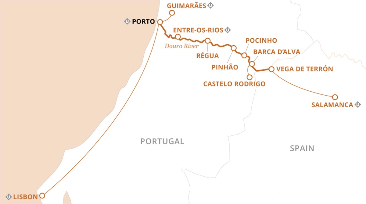 Following the Douro River through Portugal and into Spain, you’ll cruise past steeply terraced hillsides, quaint villages and acres of ripe vineyards. Enjoy private tastings of Port and explore Porto’s historic Ribeira district, home to iconic rabelo boats, cutting-edge cuisine and a thriving art scene. Wind your way through the dramatic landscapes of the UNESCO-designated Douro Valley, heading ashore to visit charming quintas and meet the winemakers who operate them. See the famous university of Salamanca, Spain, and visit the mountaintop village of Castelo Rodrigo.